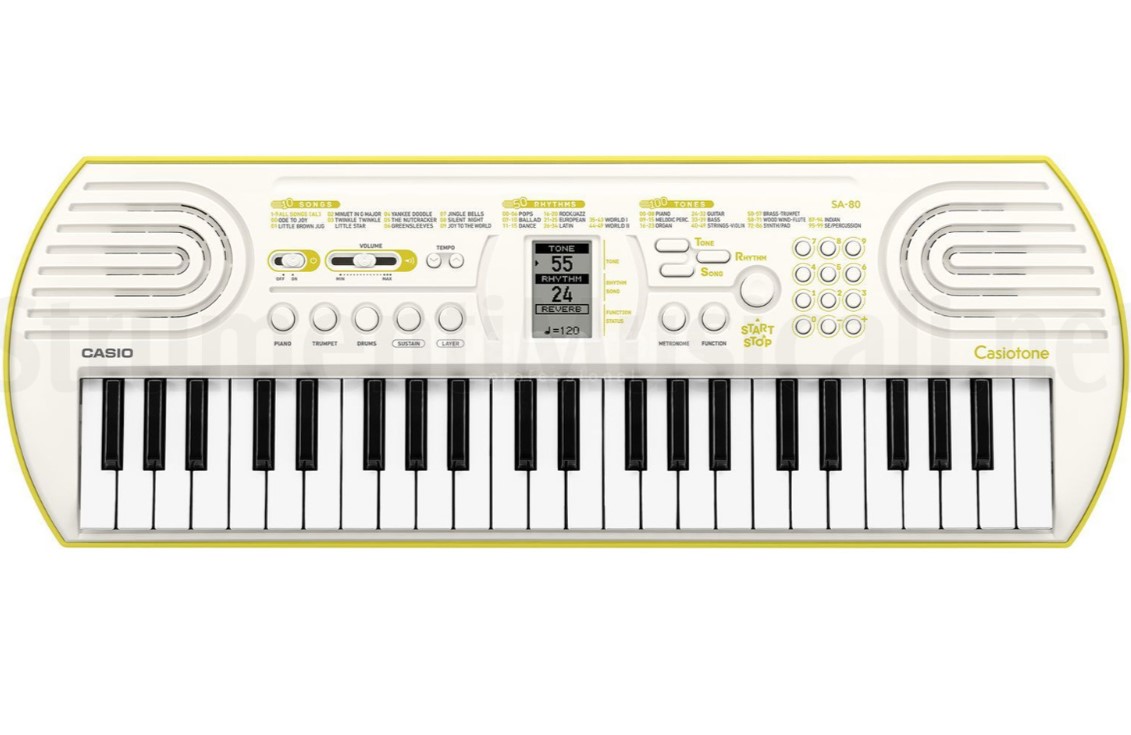 Le nuove Casiotone SA-80 sono innovate con un nuovo chip sonoro che migliora la qualità del suono ed espande le possibilità creative offrendo nuove funzioni ed effetti, come riverbero, sustain e layer. Inoltre, le mini-tastiere forniscono un metronomo integrato e la funzione di trasposizione: in breve, tutto ciò di cui hai bisogno per muovere i primi passi nel mondo della musica.