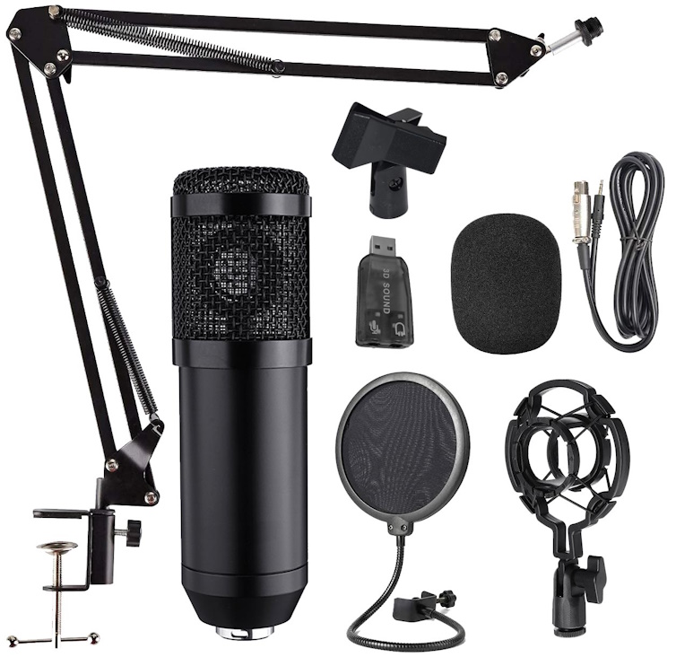 Completa il Kit un pratico parasoffi che rende professionale l’uso di questo set microfonico. Utile a cantanti e youtuber.