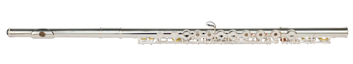 Flauto traverso in Do. Imboccatura: nickel argentato. Corpo e chiavi: argentate.